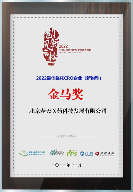 2022最佳临床CRO企业 (新锐型) 金马奖