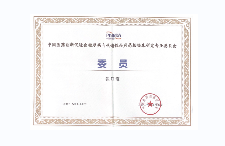 中国医药创新促进会糖尿病与代谢性疾病药物临床研究专业委员会委员